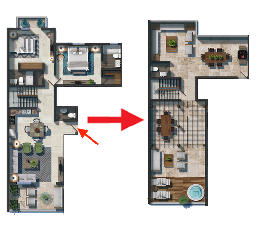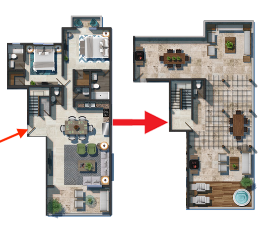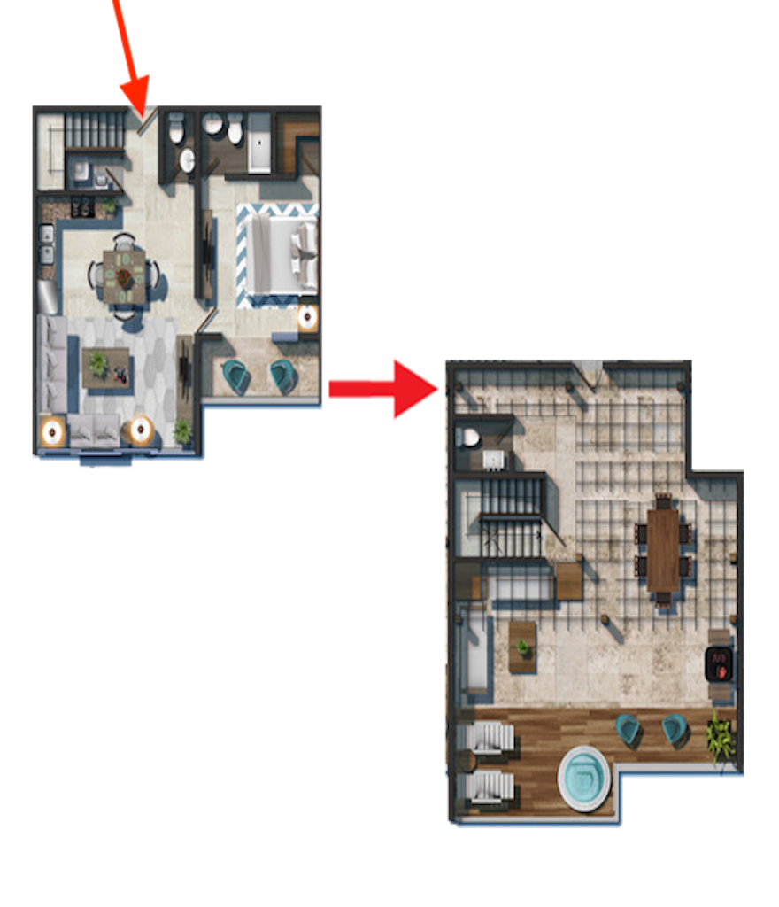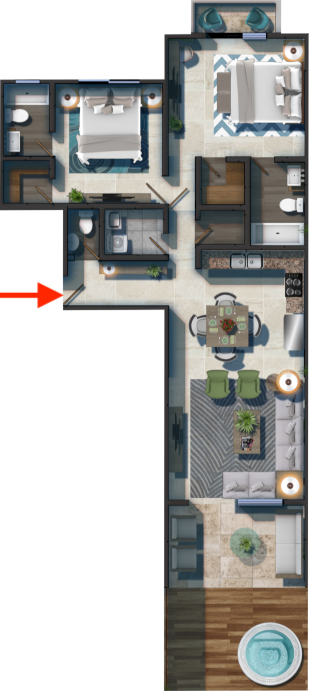 2 Bedrooms with Walk-in Closet / 2 Full Bathrooms / Guest Bathroom / Living Room / Dining Room / Kitchen / Laundry / Deck with Private Jacuzzi