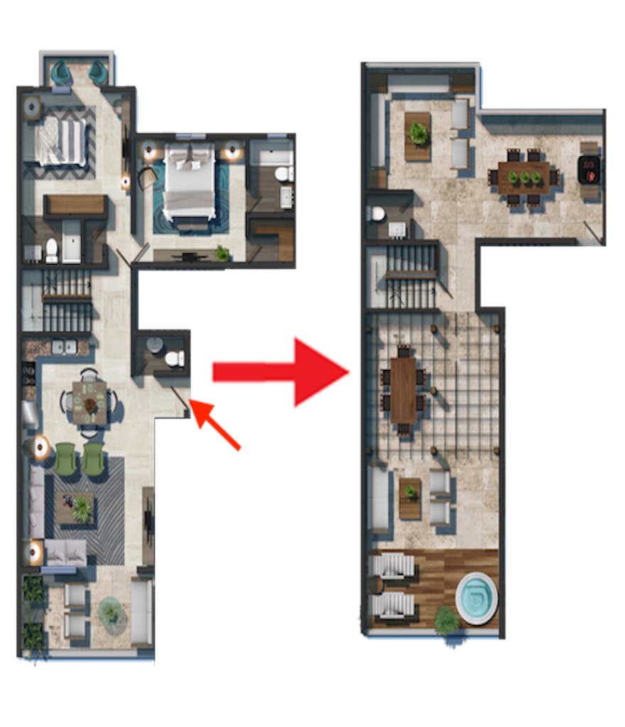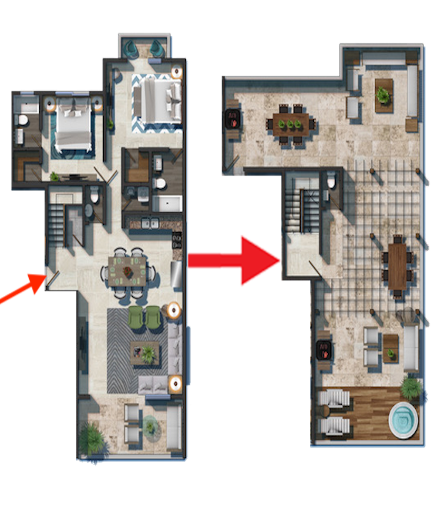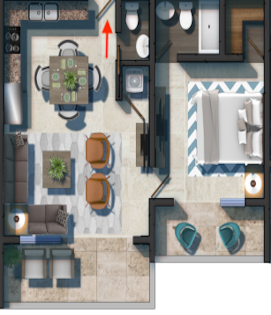 1 Bedroom with Walk-in Closet / 1 Full Bathroom / 2 Guest Bathrooms / Living Room / Dining Room / Kitchen / Laundry / Entertainment Room / Great Deck / Private Jacuzzi