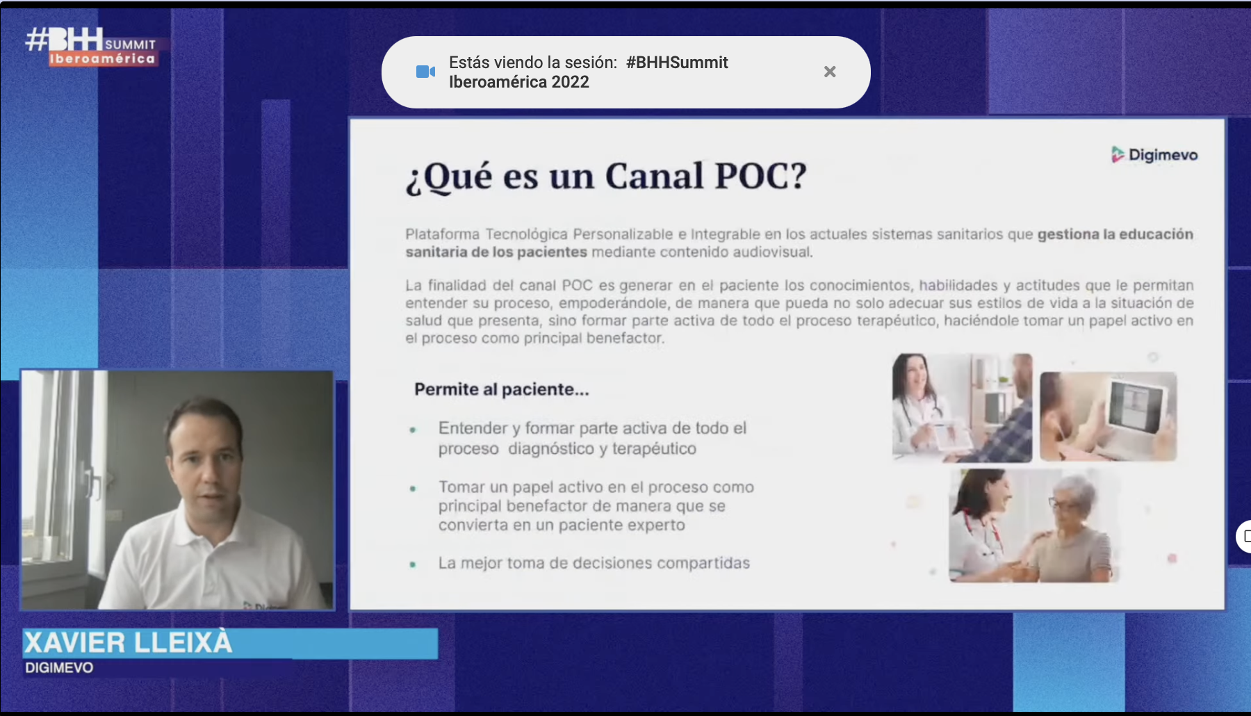 «La tecnología del canal se basa en un concepto denominado Cava POC y POC significa «point of care», el cual es un sistema que permite generar en el paciente conocimientos, habilidades y aptitudes que le ayudan a formar parte activa de todo proceso de diagnóstico terapéutico, así como ayudarle a tomar decisiones compartidas», explicó Xabier Lleixá de Digimevo en la conferencia del #BHHSummit Iberoamérica.