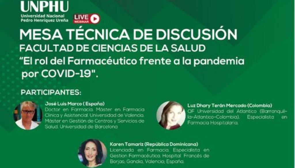 SANTO DOMINGO.- La Universidad Nacional Pedro Henríquez Ureña (UNPHU), invita a la mesa técnica de discusión de la Facultad de Ciencias de la Salud, con el tema “El rol del farmacéutico frente a la pandemia por COVID-19«. El webinar es organizado por la Escuela de Farmacia y se llevará a cabo el martes, 20 de […]