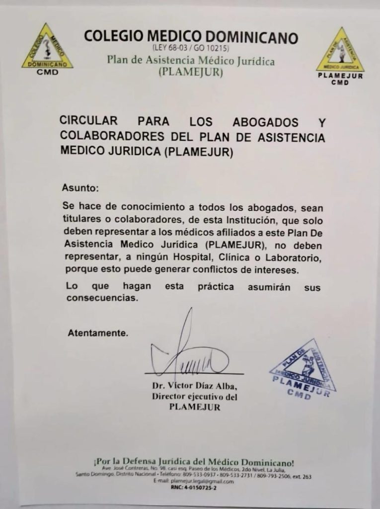 “PLAMEJUR representa a los médicos afiliados a PLAMEJUR, mientras que las clínicas privadas están afiliadas a ANDECLIP. Ambas instituciones tienen su propio consejo de administración”, precisó.