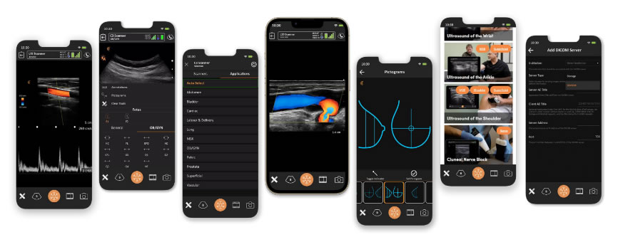 El sistema de imágenes de ultrasonido inalámbrico de Clarius elimina la necesidad de cables y equipos voluminosos, lo que permite a los profesionales de la salud realizar sonografías en cualquier lugar. Los dispositivos Clarius son portátiles y se conectan de manera fluida a dispositivos móviles, como tabletas y teléfonos inteligentes, a través de una aplicación dedicada impulsada por inteligencia artificial tanto para Apple o Android que entrega de manera automática la mejor imagen