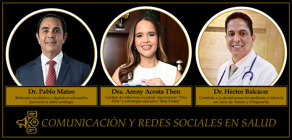 En Comunicación y Redes Sociales de Salud fueron seleccionados el Dr. Pablo Mateo Santos, el Dr. Héctor Balcácer y la Dra. Amny Acosta Then, por su labor comunicacional en educación, prevención y combate a la desinformación en salud.