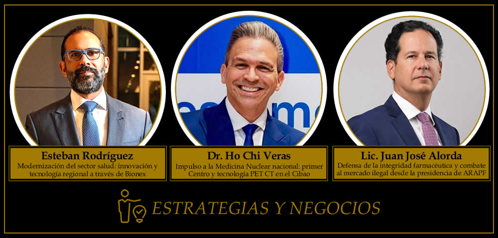 En Estrategias y Negocios fueron elegidos Esteban Rodríguez, de Bionex Pharmaceuticals; el Dr. Ho Chi Veras, de CIMEN San Francisco de Macorís; y el Lic. Juan José Alorda, de ARAPF, por impulsar la innovación, descentralización y modernización del sector salud.