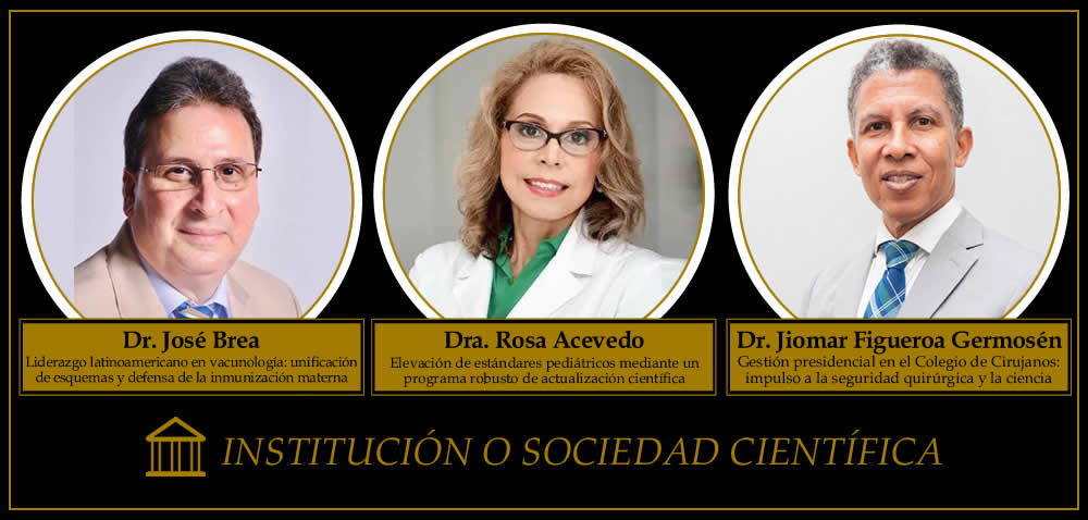 En Instituciones o Sociedades Científicas los finalistas son el Dr. José Brea, de la Sociedad Latinoamericana de Vacunología; el Dr. Jiomar Figueroa Germosén, del Colegio Dominicano de Cirujanos; y la Dra. Rosa Acevedo Saladín, de la Sociedad Dominicana de Pediatría, por su incidencia en políticas y educación médica.