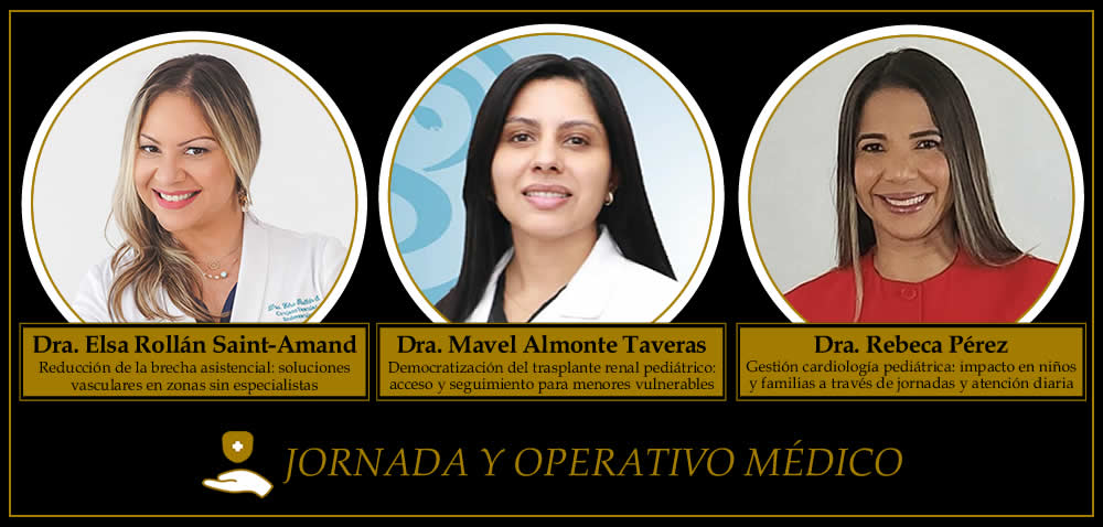 En Jornadas y Operativos Médicos, los finalistas son la Dra. Elsa Consuelo Rollán Saint-Amand, de la Sociedad Dominicana de Cirugía Vascular y Endovascular; la Dra. Mavel Almonte Taveras, del Programa de Trasplante Renal Pediátrico de la Plaza de la Salud; y la Dra. Rebeca Pérez González, de CEDIMAT, por sus jornadas de cirugía cardiovascular pediátrica.