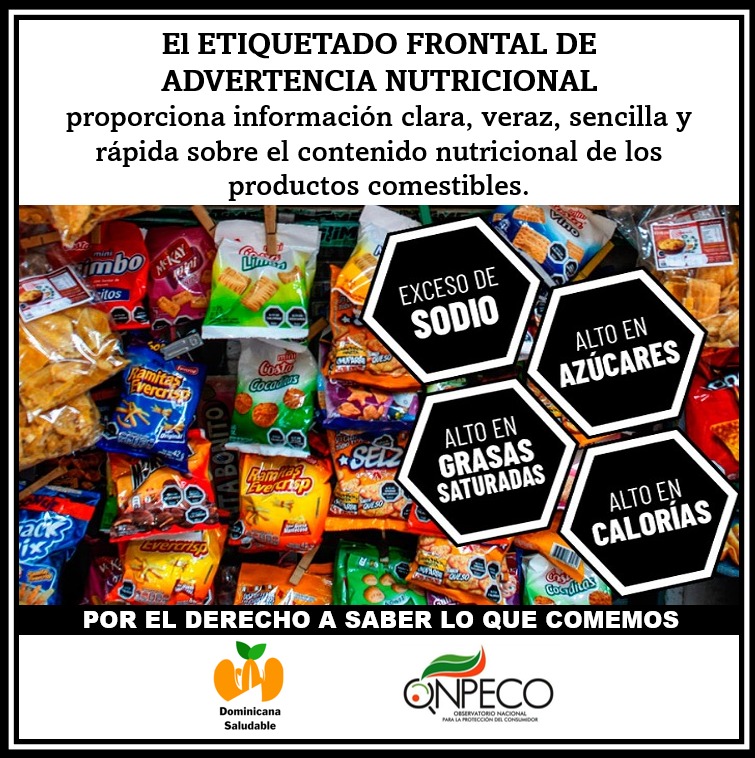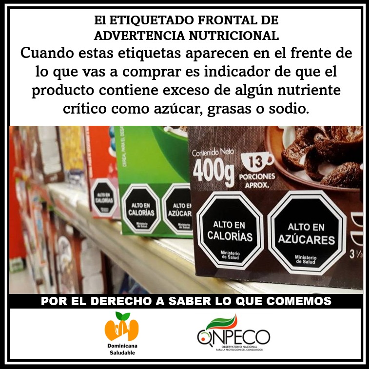 En el país Dominicana Saludable y el Observatorio Nacional para la Protección del Consumidor (ONPECO), a través de sus redes sociales mantienen una campaña que promueve información acerca de la importancia del etiquetado frontal.