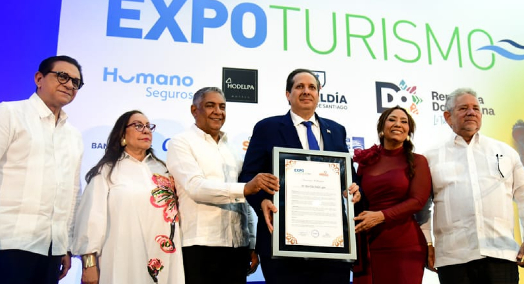 la Feria Expoturismo, por el presidente del evento y del Clúster Turístico de Santiago, Ramón Paulino; la directora ejecutiva de Expoturismo, Yomaris Gómez; el senador y la gobernadora de Santiago, Daniel Rivera y Rosa Santos, respectivamente, así como por el viceministro de Turismo, Roberto Henríquez.